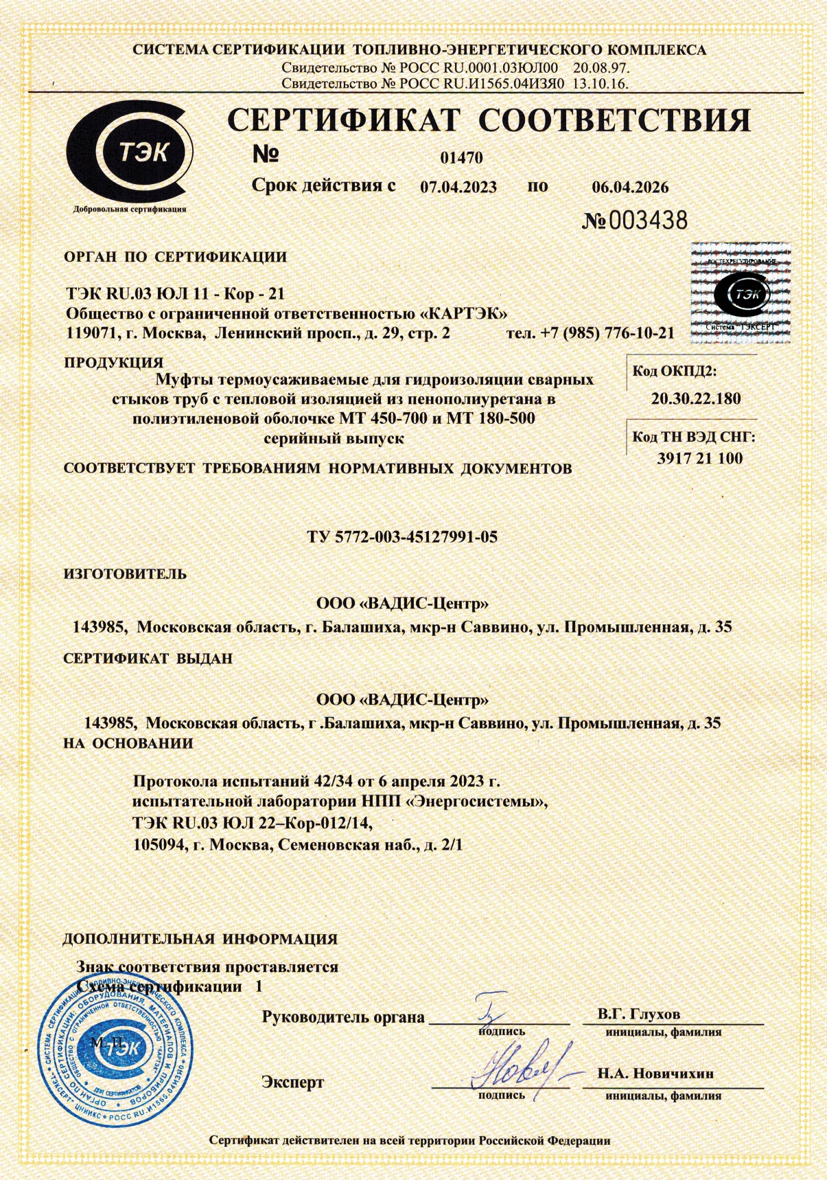 Сертификаты на продукцию и комплектующие