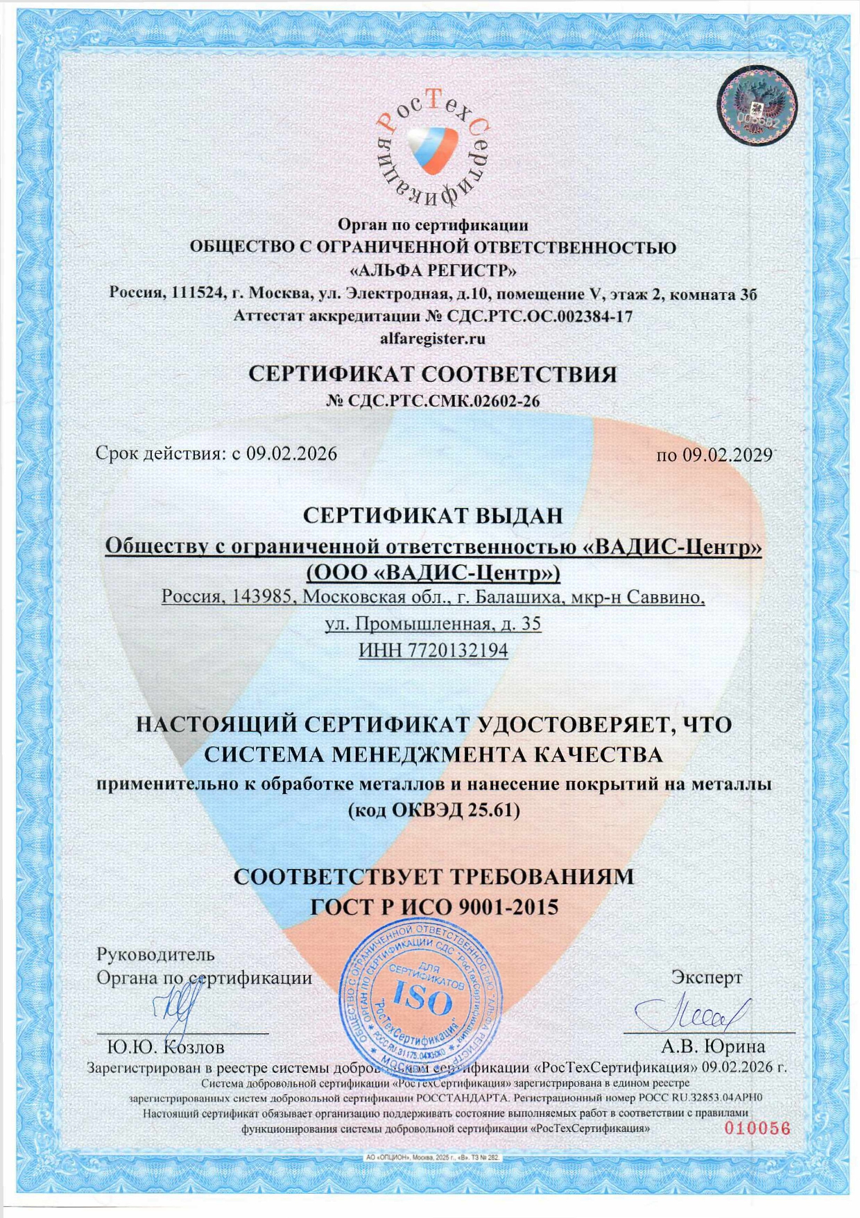 Сертификат промышленной и экологической безопасности